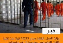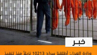 وزارة العدل: أطلقنا سراح 10213 نزيلاً منذ تنفيذ قانون العفو ومجـ ـرمو سبايكر غير مشمولين
